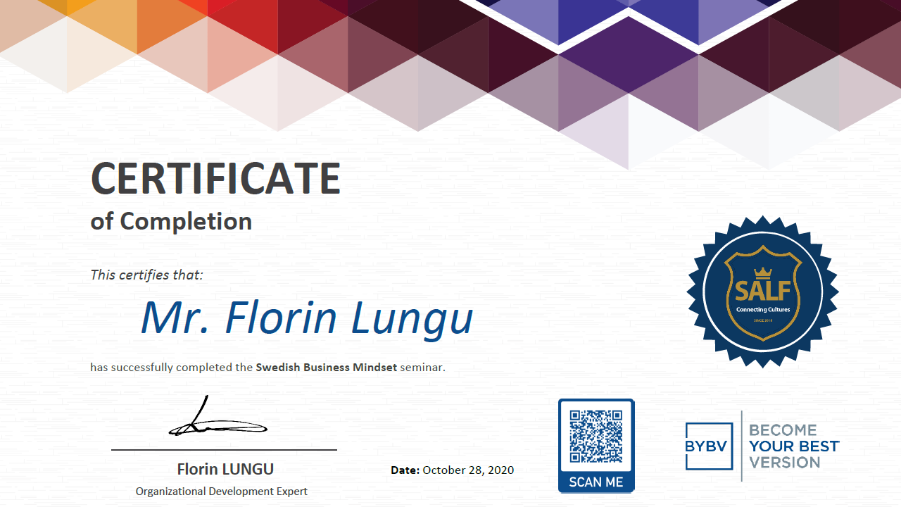 Get your paper certificate for the Swedish Business Mindset workshop and build your portfolio.